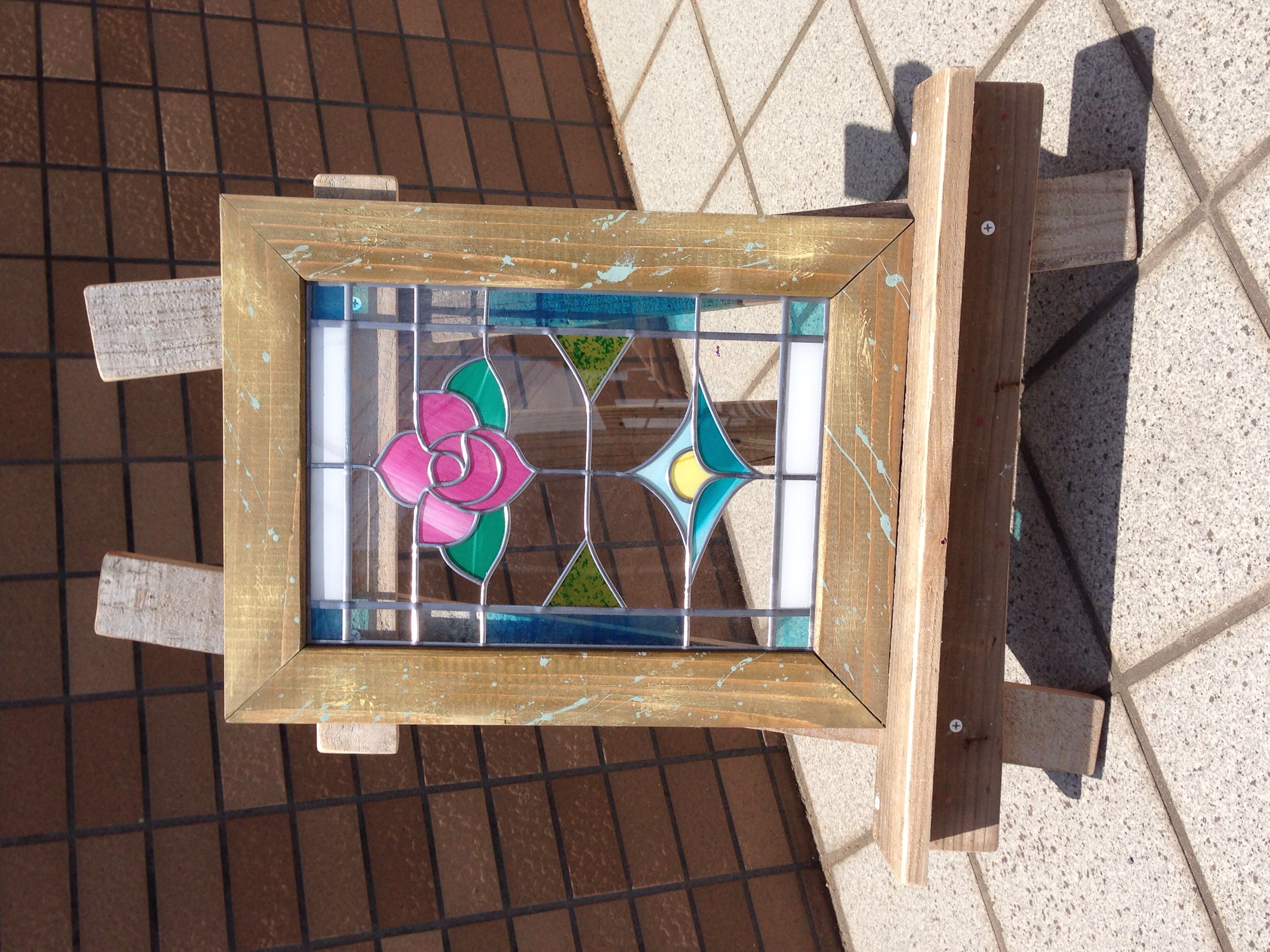 ダンディにご指導いただきながらオリジナルフレームをつくりました。フレームで飾ったのはこれまた女子部宮野さんのWSで作ったグラスアートです。そのままでも素敵だったけど、フレームにいれたらもっと雰囲気が良くなったような気がしてます。フレームの角はダンディ直伝の留め型相欠き接ぎ、アクリル板をはめ込む溝は丸ノコでほりましたよ。仕上げはmo:kat姉さんとりかっぴぃに教えてもらったペンキ飛ばしの技で!