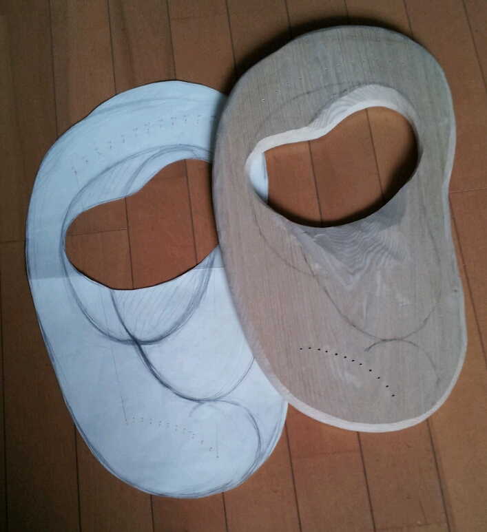 岩手県の震災被災地にプレゼントするために、小型の竪琴を作っているところで、タモ材をジグソーで切って、ベルトサンダーで端を削って丸くしました。